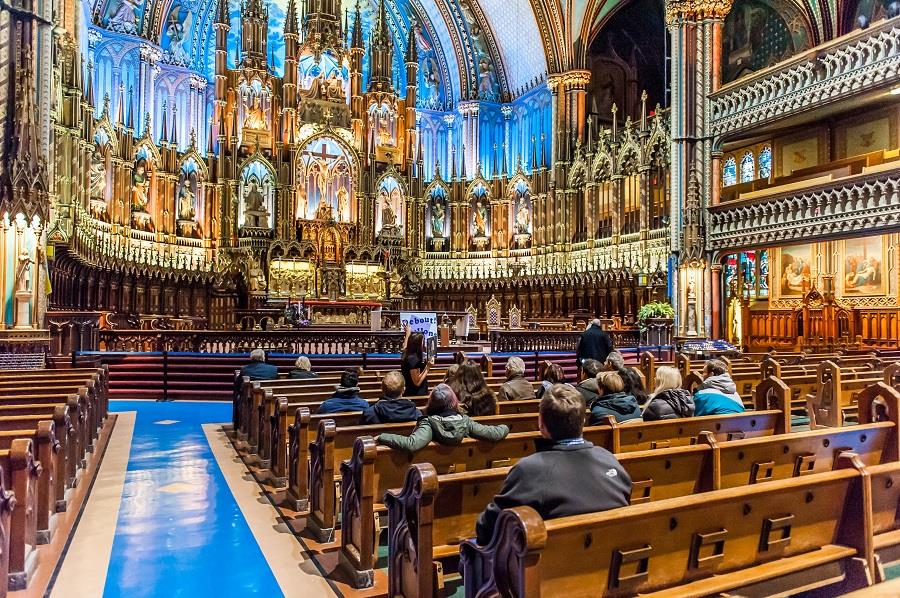 • Vương cung thánh đường – Notre Dame Basilica - nhà thờ gắn liền với lịch sử Montreal. Ánh sáng xuyên qua những bức tranh thủy tinh màu trên cửa sổ và mái vòm cùng nội thất gam màu vàng ấm tạo nên một không gian linh thiêng, huyền ảo cho thánh đường.