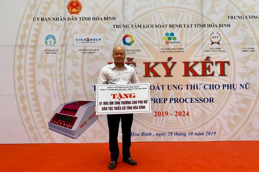 Vào ngày 28.10 vừa qua, đại diện BGĐ VINAGROUP đã có chuyến công tác hoạt động thiện nguyện tại các tỉnh miền núi Tây Bắc trong đó có Hoà Bình. Công ty VINAGROUP đã đồng hành cùng 1 số doanh nghiệp cũng như cty Anapath tổ chức lễ kí kết thiết bị tầm soát ung thư cho phụ nữ tại tỉnh Hoà Bình.