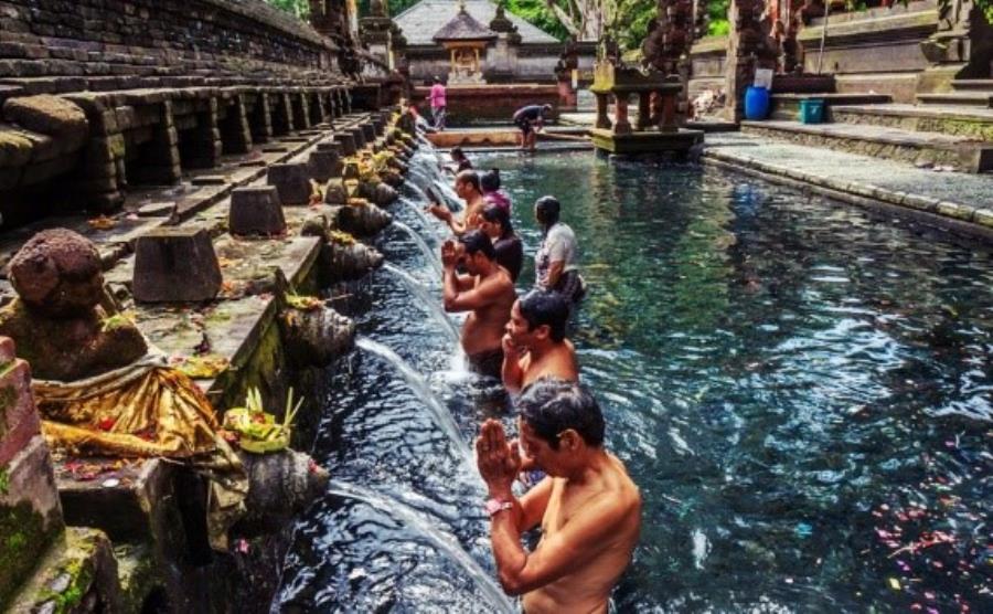 • Tham quan Đền Tirta Empul - nằm ở trung tâm đảo Bali, vùng Tampaksiring gần đền Gunung Kawi.Ngôi đền Hindu này được xây dựng quanh một con suối và bể tắm đặc biệt. Đền được xây dựng từ thế kỷ thứ 10. Nơi đây thường đông đúc với nhiều người tham gia vào các nghi lễ tắm đặc biệt mà người dân Bali gọi là Melukat. Quý khách được mặc trang phục truyền thống và sarong và tắm mình vào hồ nước thiêng cầu nguyện cho mọi sự may mắn, sức khỏe tràn đầy.